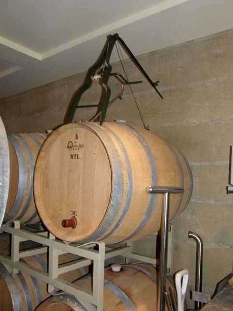 for tipping of the barrels (see photo). In all my years of travels to wineries, I have never seen oak barrels