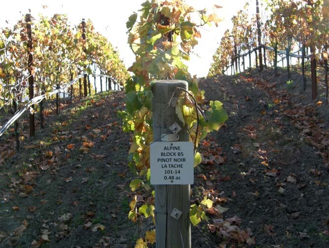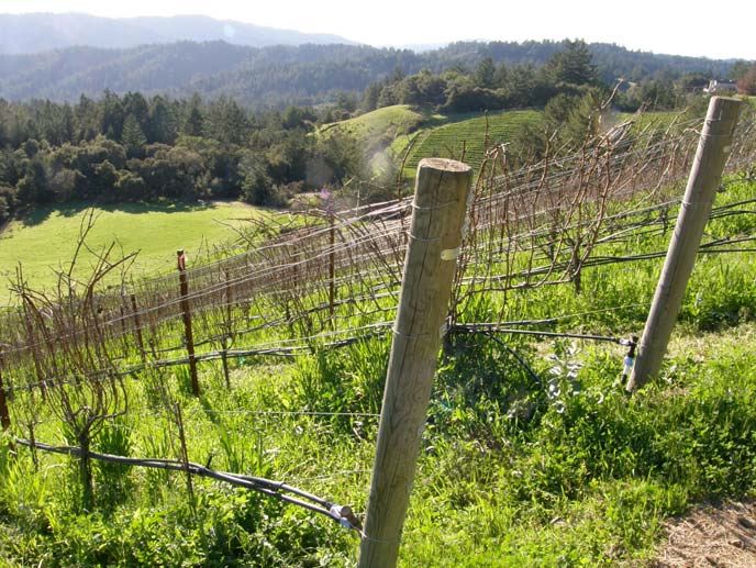 clonal selections for each site. The Alpine Road Vineyard, pictured below, is very steep requiring hand farming