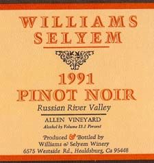 1991 Williams Selyem Allen Vineyard Russian River Valley Pinot Noir
