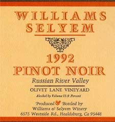 1992 Williams Selyem Olivet Lane Vineyard Russian River Valley Pinot Noir