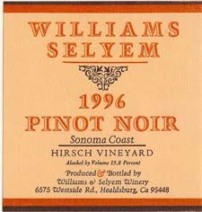 1996 Williams Selyem Hirsch Vineyard Sonoma Coast Pinot Noir