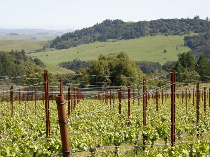neighboring Bodega Headlands Vineyard farmed by Kistler and sheep grazing in the distance.