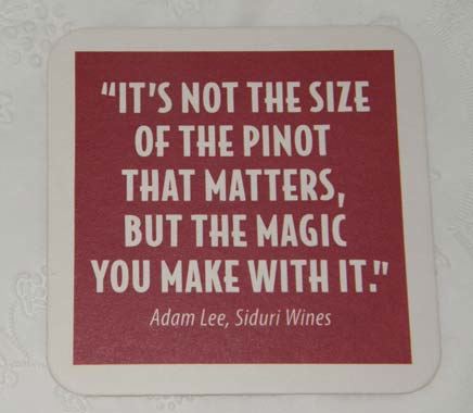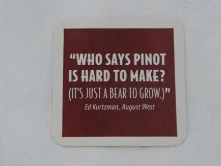 Russian River Valley Pinot Noir. I had a laugh over this last wine. Co-owner Craig Haserot told me the Wine