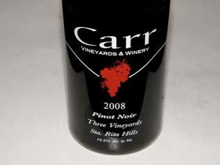 2008 Carr Vineyards & Winery Three Vineyards Sta. Rita Hills Pinot Noir