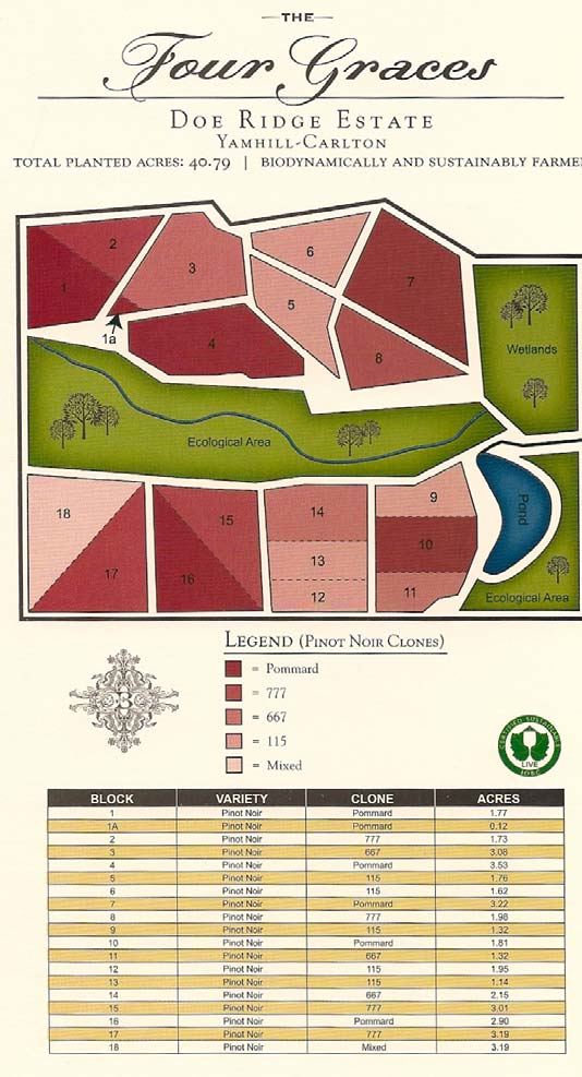 Since 2007, The Four Graces has bottled and sold a Doe Ridge Vineyard Pinot Noir composed of Pommard