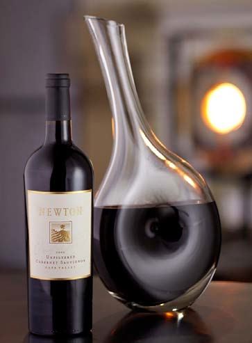 Striking Decanter Newton Vineyard has collaborated with blown glass artist John Pomp to produce a