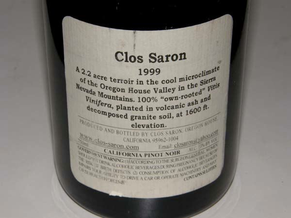 The 1999 through 2001 vintages were simply labeled Clos Saron California Pinot Noir. In 2002 and 2003, the