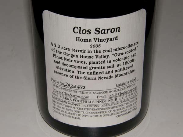 2005 Clos Saron Home Vineyard California Pinot Noir