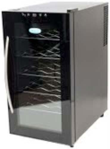 interest. The NewAir AW-180E thermoelectric wine cooler is sleek in design, has five chrome-plated shelves