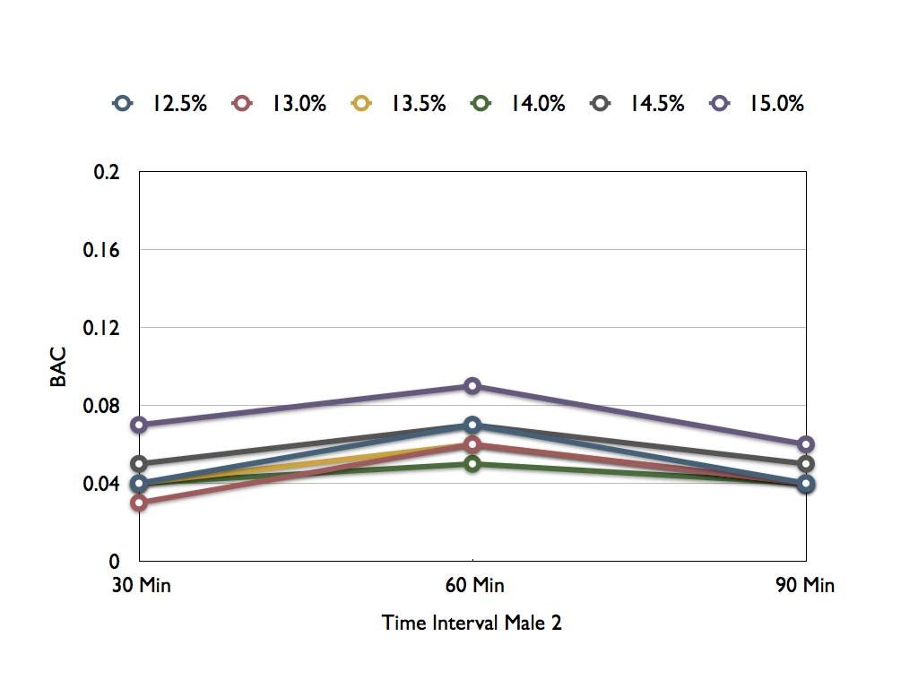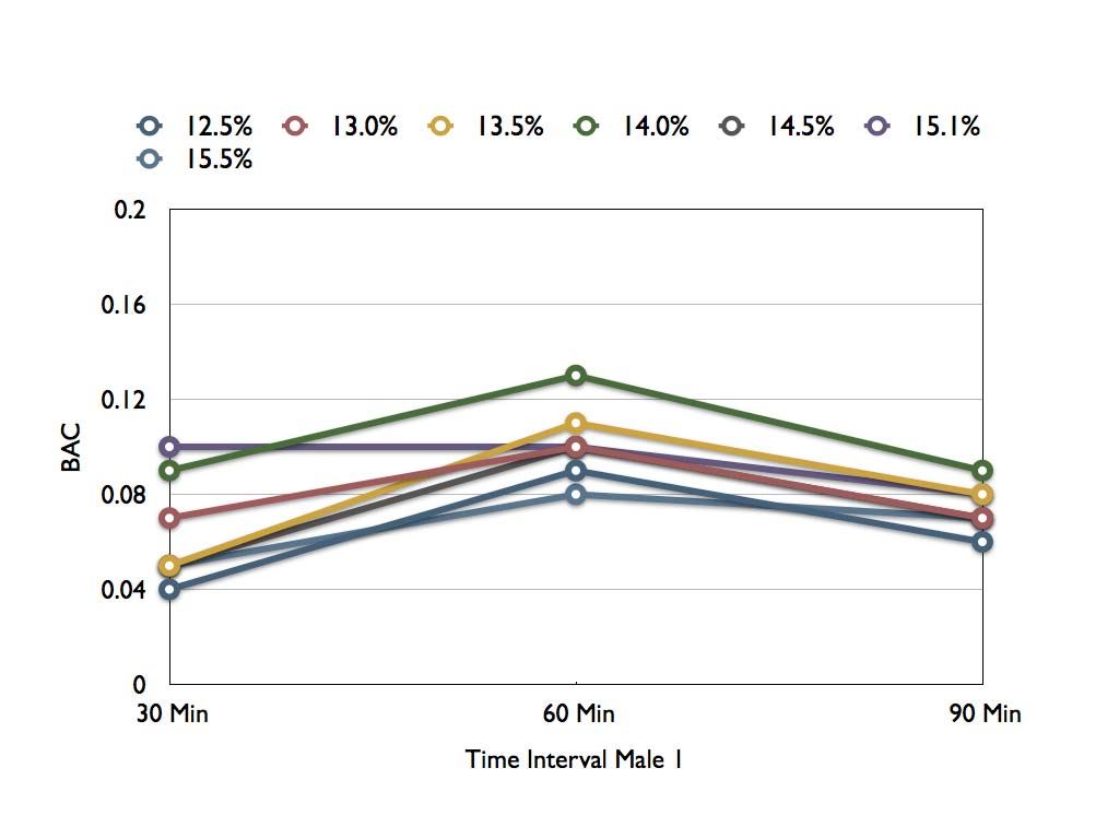 (2) Wines with higher alcohol percentages did not consistently produce higher BACs although there were