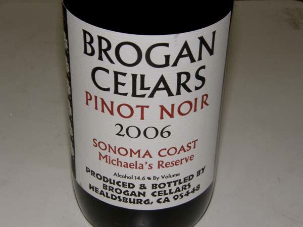 2006 Brogan Cellars Michaela’s Reserve Sonoma Coast Pinot Noir $110