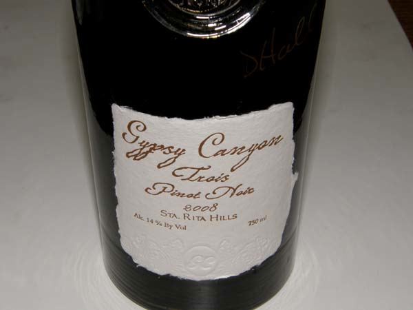 2008 Gypsy Canyon Trois Sta. Rita Hills Pinot Noir 75 cases, $95 Moderately deep reddish-purple