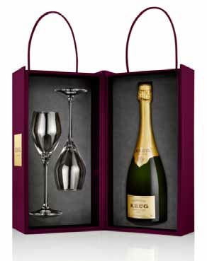 glasses by Riedel, named after the House’s visionary founder, along with a bottle of Krug Grande Cuvée. The