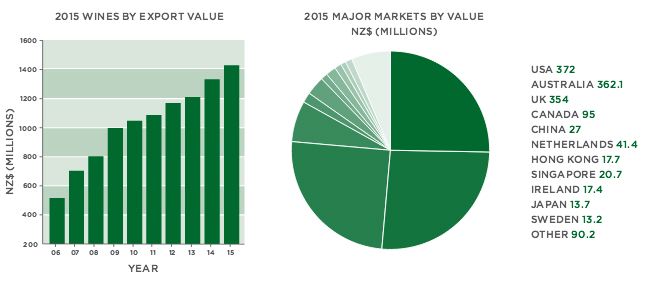 According the 2015 New Zealand Winegrowers Annual Report, the value of New Zealand wine exports grew