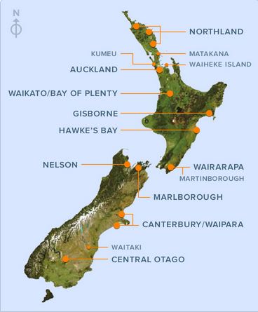North Island, and Marlborough and Central Otago in the South Island, produce wines that are quite different in