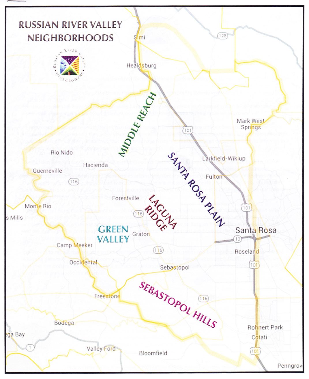 (715 vineyard acres and 5 wineries), Green Valley (2,860 vineyard acres and 10 wineries), Russian River