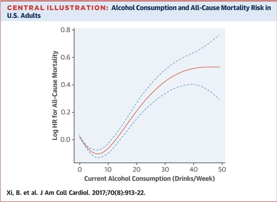 mortality in U.S. adults. The author’s analysis shows a clear J-shaped curve for the relation of alcohol to