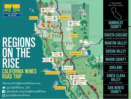 Explore California’s Wine Regions on the Rise The Wine Institute’s Road Trip Series highlights different wine regions each month. For March, the series offered tips for traveling to California’s offthe- beaten-path regions including Humboldt County, Marin County and Santa Clara Valley. Visit www.discovercaliforniawines.com for information on California’s 138 American Viticultural Areas and 4,600 wineries.