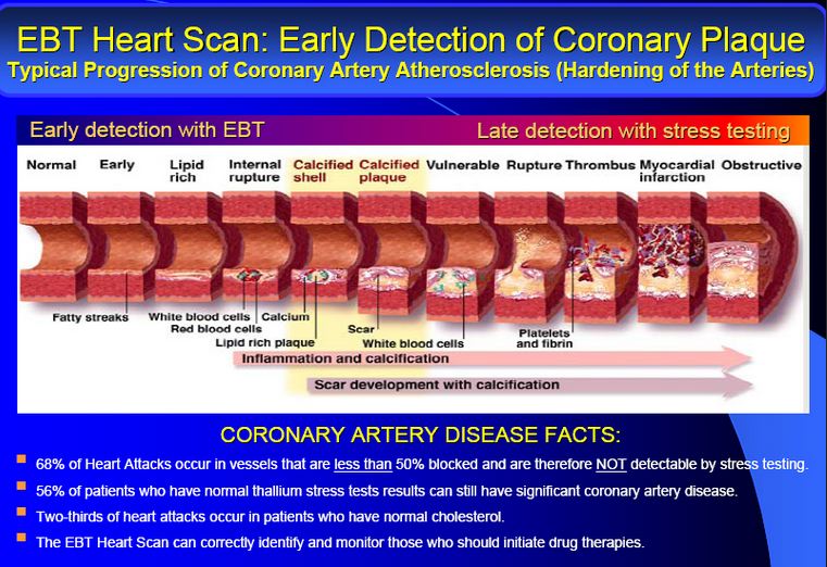 Electronic Beam Tomography (EBT), especially if they have any risk factors such as high blood pressure, high
