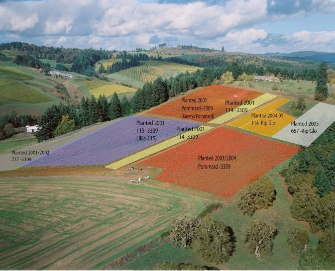 Planting continued through 2001 and included grafting over the “828” clone vines to Erath 95 clone.