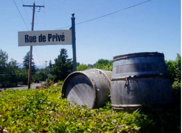 head. My arrival was signaled by two aged oak wine barrels next to a sign reading, “Rue de Privé.” I knew right