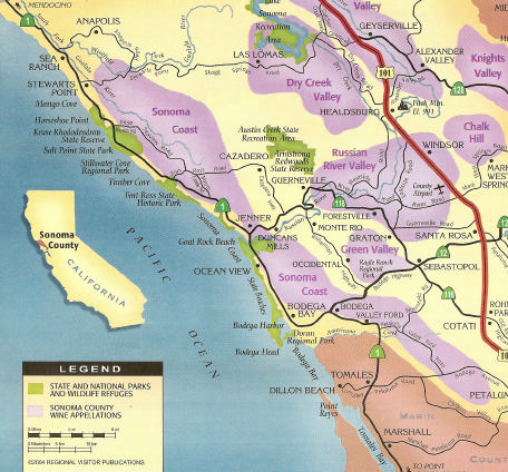 Sonoma Valley, the western part of Chalk Hill, all of Green Valley, and most of the Russian River