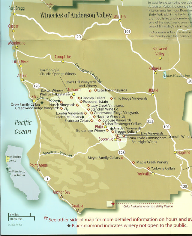and the Pacific Ocean. The latest map of Anderson Valley published by the Anderson Valley Winegrowers