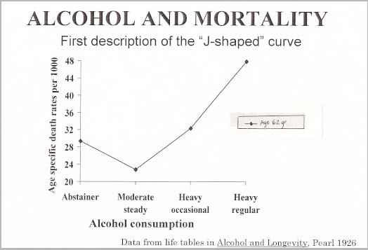 relationship between alcohol intake and mortality dates to 1926 when biologist