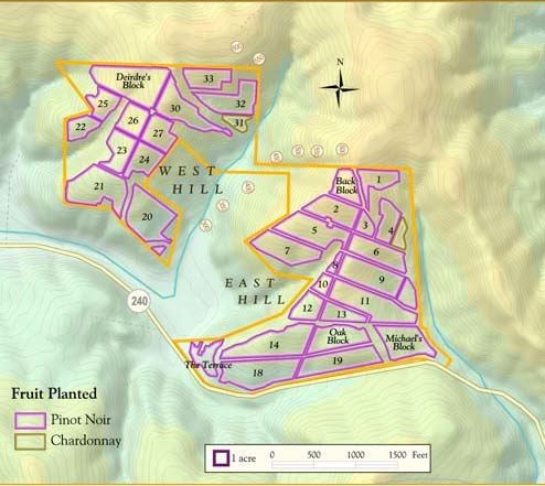 clonal mix known as selection massale, while Oregon vineyards are composed of distinct blocks of separate