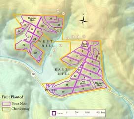 designations of past vintages (the vineyard is divided into two portions known as West Hill and East Hill, and