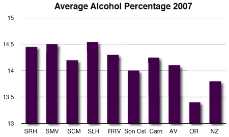 Pinot Noirs are midway between the 2006 and 2007 vintages, with well-endowed, forward fruit typical of the