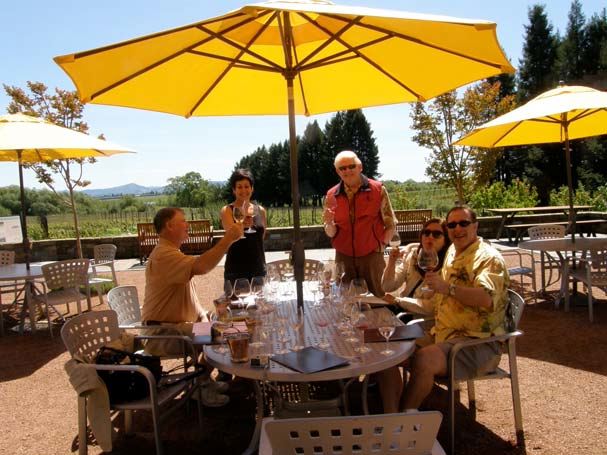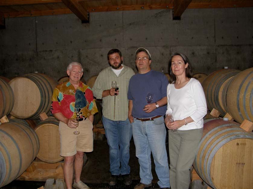 winery with left to right, Drew Voit, Dick Shea, and Diedre Shea (below).