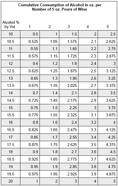 glass, thinking it is one standard drink. A table showing the cumulative consumption of alcohol in ounces per