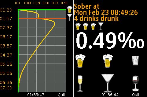 users blood alcohol level at any time and tells the user when they will be sober (the users weight, height,