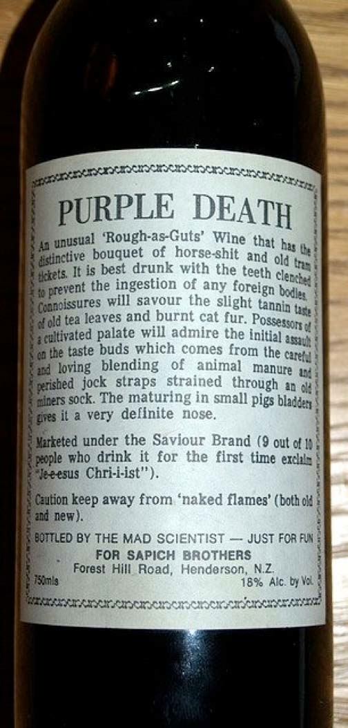 Outrageous label Doug Parsons shared this photo of an actual wine label from New Zealand.