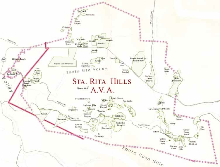 246 (Santa Rita Hwy 246 corridor). Refer to the map of the Sta. Rita Hills AVA below for the location of