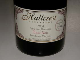 2004 Hallcrest Vineyards Terra Serena Vineyard Santa Cruz Mountains Pinot Noir