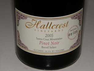 2005 Hallcrest Vineyards Barrel Select Santa Cruz Mountains Pinot Noir