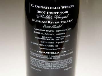 2007 C. Donatiello Maddie’s Vineyard Russian River Valley Pinot Noir
