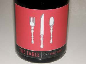 The lineup includes The Table Napa Valley Cabernet Sauvignon, The Table Pinot Noir, and The Fork, The Knife, and The Spoon (Napa Valley Red Wines). The Pinot Noir is sourced from a single vineyard in Edna Valley and reasonably priced. The wines are sold online.